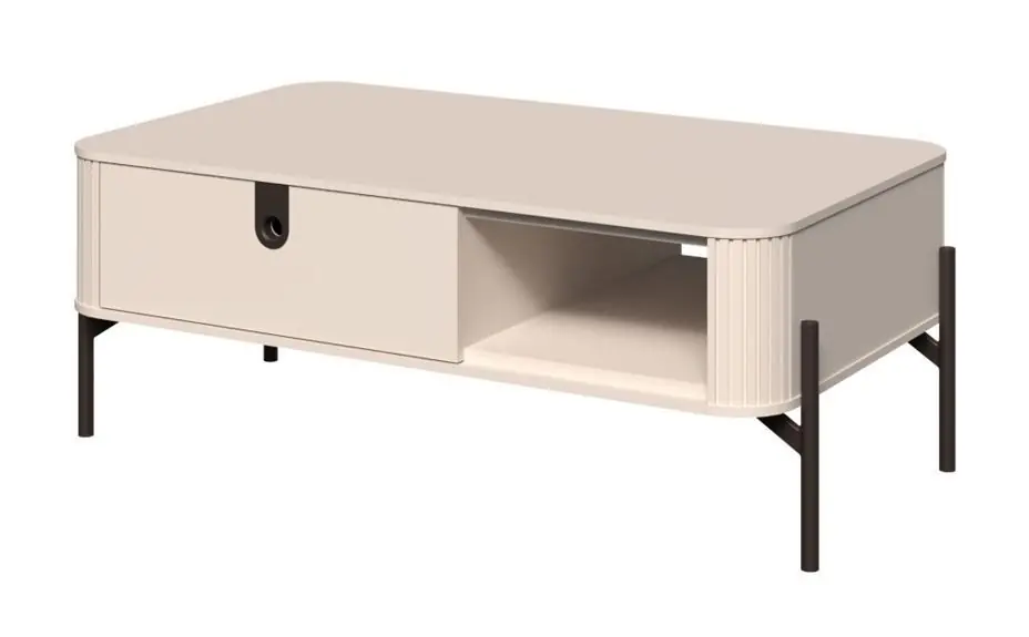 Couchtisch mit Schublade Aufaga 05 | 43 x 110 x 65 cm | Kaschmir matt | Soft Close System | Metallbeine | dekorative Relief-Streifen | 1 Fach