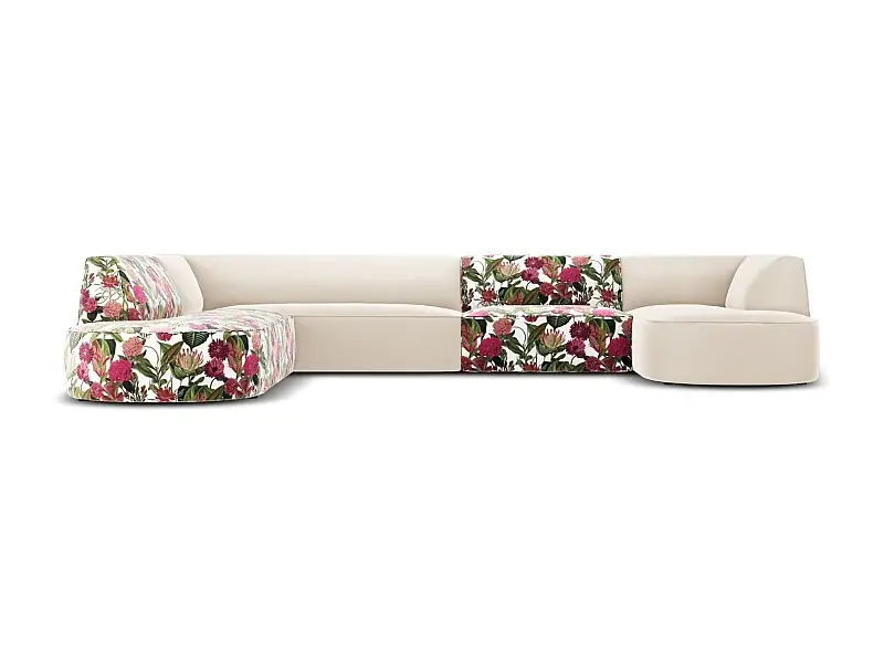 CXL by Christian Lacroix – 7-Sitzer Panoramasofa links „Charles“ Sitzer aus Samt rosengarten-motiv – 366x273x69cm Highlight