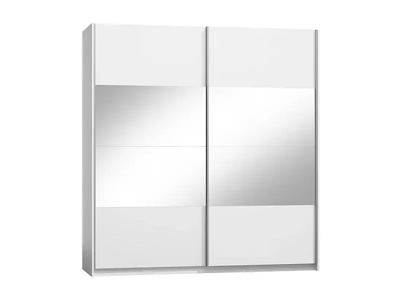 Designschrank VERONA mit zwei Schiebetüren. Spiegel inklusive. Farbe Alpinweiß, glänzende Oberflächen. Mega-Angebot