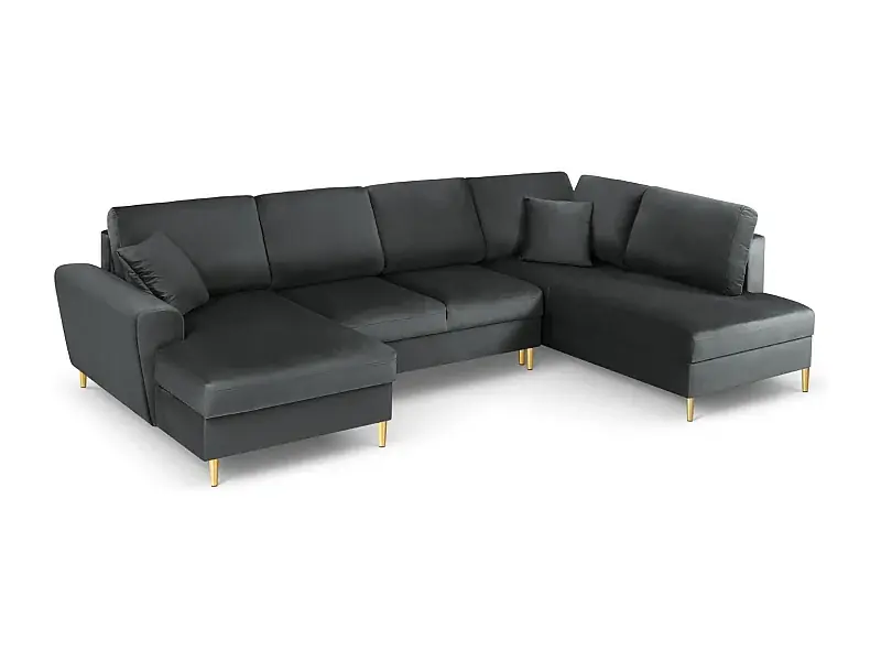 Direkt Vom Hersteller Cosmopolitan Design – 7-Sitzer ausklappbares Panoramasofa mit Bettkasten rechts „Kyoto“ aus Samt dunkelgrau – 313x194x88cm