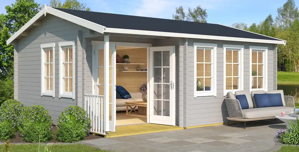 Gartenhaus G289 Lichtgrau inkl. Fußboden – 44 mm Blockbohlenhaus, Grundfläche: 26,88 m², Satteldach