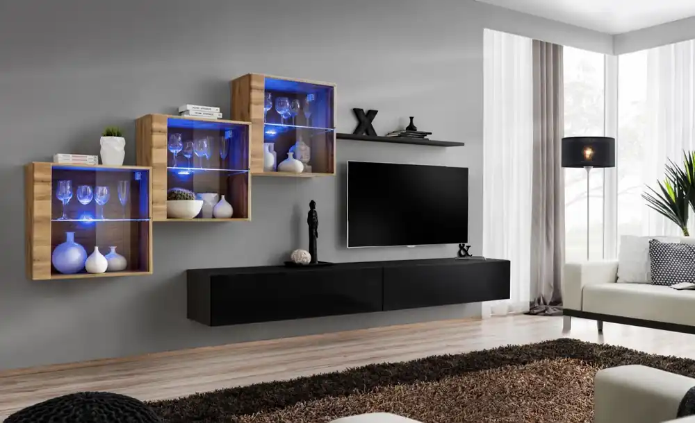 Gönnen Sie sich einen Hauch von Luxus in Ihrem Wohnbereich. Erleben Sie die Kombination aus hohem Komfort, ausgefeiltem Design und erstklassiger handwerklicher Qualität in der praktischen und eleganten Wohnwand mit LED-Beleuchtung Balestrand 317. Sie bietet Platz und Ordnung in einem modernen, auf Ihre Bedürfnisse zugeschnittenen Design, das jedes Wohnzimmer in ein einladendes Zuhause verwandelt.