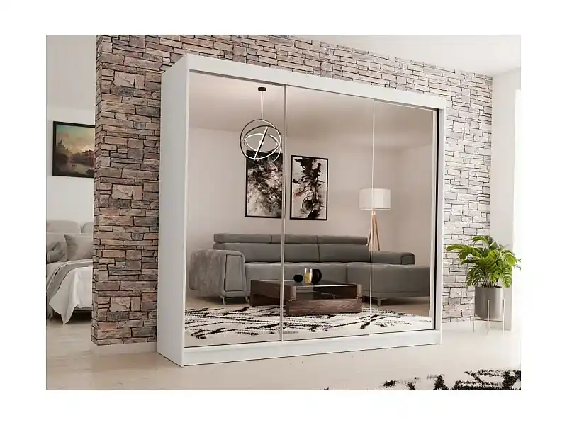 Direktkauf SCHWEBETÜRENSCHRANK Debra 240/216/61 weiß mit Spiegel und Schubladen