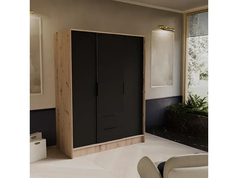 DREHTÜRENSCHRANK Niko 150/51/200 cm eiche artisan+schwarz Sichere Zahlung