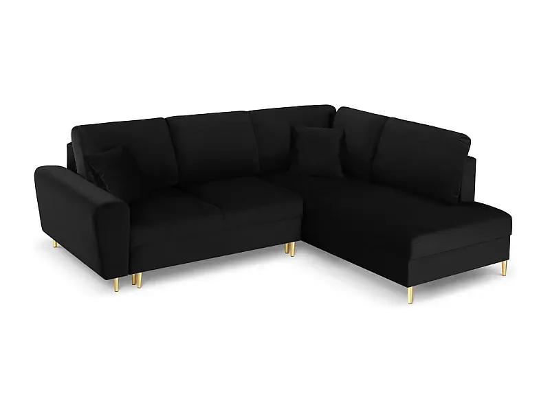 Echt Cosmopolitan Design – 5-Sitzer ausklappbares Ecksofa rechts mit Container „Kyoto“ aus Samt schwarz – 243x194x88cm