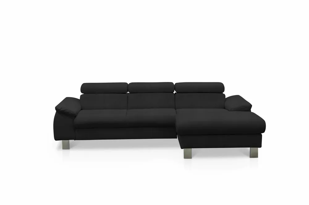 Stylisches Ecksofa Anton mit Schlaffunktion und Bettkasten beidseitig montierbar im robustem Luxus-Webstoff Flachgewebe  Auf die Plätze, Fertig, Los! Auf dem Ecksofa Anton von Black Red White mit einem Stellmaß von 289 x 189 ist genügend Platz, damit sich jeder seinen Lieblingsplatz sichern kann. Die knautschige Optik, die voluminösen und gemütlichen Polster mit vielen Kissen lassen das Ecksofa schnell zu ihrem persönlichen Lieblingsplatz werden. Der Besuch möchte doch spontan über Nacht bleiben? Eine integrierte Schlaffunktion lässt Anton im Handumdrehen in ein angenehmes Gästebett mit einer Liegefläche von 222 x 118 cm verwandeln. Das nötige Bettzeug können Sie einfach in dem unter der Bettfunktion gelegenen Bettkasten verstauen. Wählen Sie aus einer von vielen verfügbaren Farben und passen Sie Anton ihrem Wohnzimmer an. Das Sofa kann wahlweise mit Liegefläche links oder rechts aufgebaut werden. Finde bei Myhomelando dein Traumsofa für dein zuhause !!! Maße Ecksofa – alle Maße sind ca. Angaben Gesamt: 289 x 189 cm oder 189 x 289 cm Sitztiefe: 50 cm Sitzhöhe: 42 cm Rückenhöhe: 85 cm Ohne abgebildete Deko wie Kissen etc., Farbe auf dem Foto kann leicht vom Original abweichen (Bildschirm)