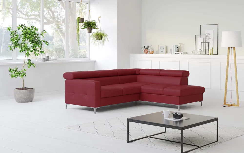 Stylisches Ecksofa Anton mit Schlaffunktion und Bettkasten beidseitig montierbar im robustem Luxus-Webstoff Flachgewebe  Auf die Plätze, Fertig, Los! Auf dem Ecksofa Anton von Black Red White mit einem Stellmaß von 289 x 189 ist genügend Platz, damit sich jeder seinen Lieblingsplatz sichern kann. Die knautschige Optik, die voluminösen und gemütlichen Polster mit vielen Kissen lassen das Ecksofa schnell zu ihrem persönlichen Lieblingsplatz werden. Der Besuch möchte doch spontan über Nacht bleiben? Eine integrierte Schlaffunktion lässt Anton im Handumdrehen in ein angenehmes Gästebett mit einer Liegefläche von 222 x 118 cm verwandeln. Das nötige Bettzeug können Sie einfach in dem unter der Bettfunktion gelegenen Bettkasten verstauen. Wählen Sie aus einer von vielen verfügbaren Farben und passen Sie Anton ihrem Wohnzimmer an. Das Sofa kann wahlweise mit Liegefläche links oder rechts aufgebaut werden. Finde bei Myhomelando dein Traumsofa für dein zuhause !!! Maße Ecksofa – alle Maße sind ca. Angaben Gesamt: 289 x 189 cm oder 189 x 289 cm Sitztiefe: 50 cm Sitzhöhe: 42 cm Rückenhöhe: 85 cm Ohne abgebildete Deko wie Kissen etc., Farbe auf dem Foto kann leicht vom Original abweichen (Bildschirm)