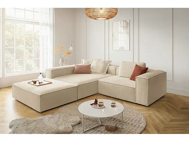 Ecksofa – Beige Flachgewebe – CARMO Kracherpreis