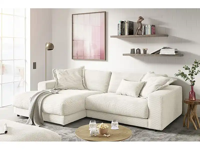 Ecksofa – Cremeweiß Cord – MADELINE Sonderaktion