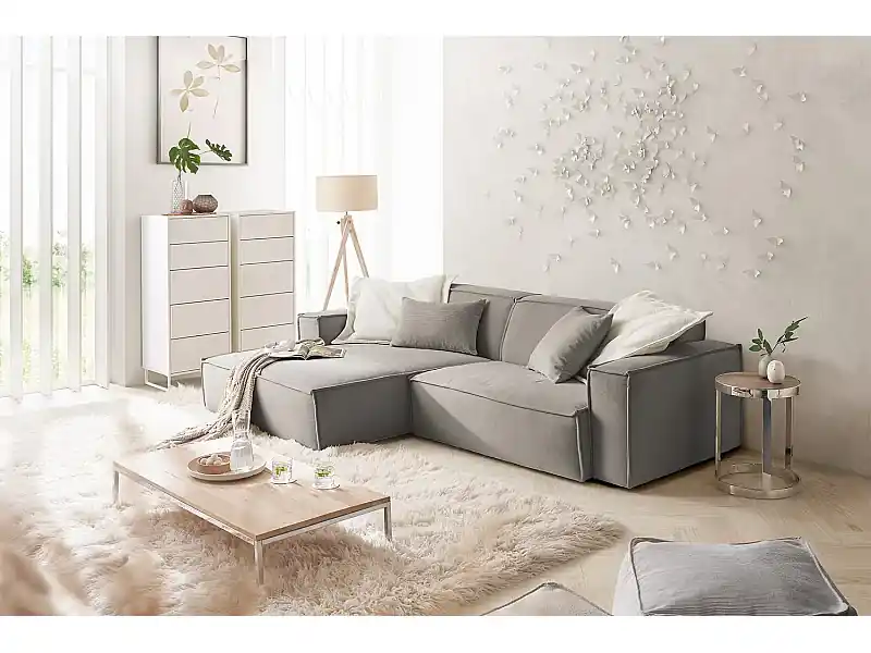 Ecksofa – Grau Cord – SAMU Neue Kollektion