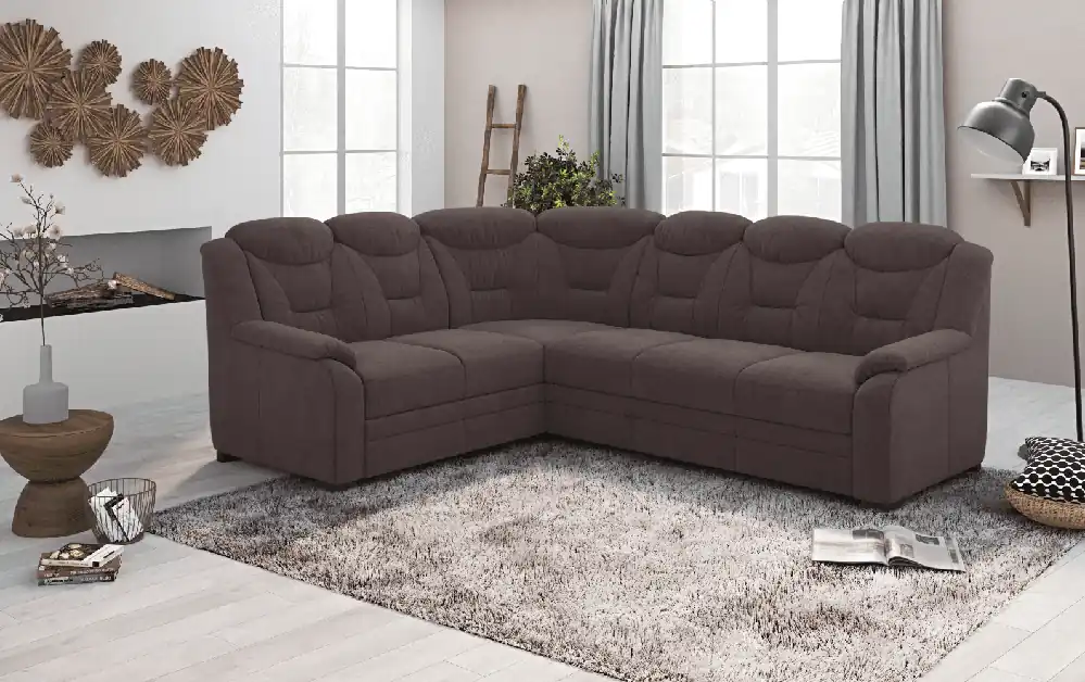 Stylisches Ecksofa Anton mit Schlaffunktion und Bettkasten beidseitig montierbar im robustem Luxus-Webstoff Flachgewebe  Auf die Plätze, Fertig, Los! Auf dem Ecksofa Anton von Black Red White mit einem Stellmaß von 289 x 189 ist genügend Platz, damit sich jeder seinen Lieblingsplatz sichern kann. Die knautschige Optik, die voluminösen und gemütlichen Polster mit vielen Kissen lassen das Ecksofa schnell zu ihrem persönlichen Lieblingsplatz werden. Der Besuch möchte doch spontan über Nacht bleiben? Eine integrierte Schlaffunktion lässt Anton im Handumdrehen in ein angenehmes Gästebett mit einer Liegefläche von 222 x 118 cm verwandeln. Das nötige Bettzeug können Sie einfach in dem unter der Bettfunktion gelegenen Bettkasten verstauen. Wählen Sie aus einer von vielen verfügbaren Farben und passen Sie Anton ihrem Wohnzimmer an. Das Sofa kann wahlweise mit Liegefläche links oder rechts aufgebaut werden. Finde bei Myhomelando dein Traumsofa für dein zuhause !!! Maße Ecksofa – alle Maße sind ca. Angaben Gesamt: 289 x 189 cm oder 189 x 289 cm Sitztiefe: 50 cm Sitzhöhe: 42 cm Rückenhöhe: 85 cm Ohne abgebildete Deko wie Kissen etc., Farbe auf dem Foto kann leicht vom Original abweichen (Bildschirm)