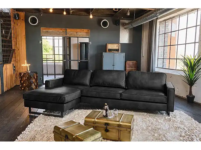 Ecksofa – Schwarz Lederfaserstoff – VILNIUS Direkt Vom Hersteller