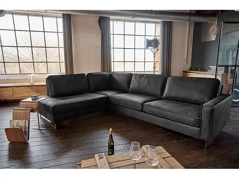 Ecksofa – Schwarz Lederfaserstoff – VILNIUS Rabatt
