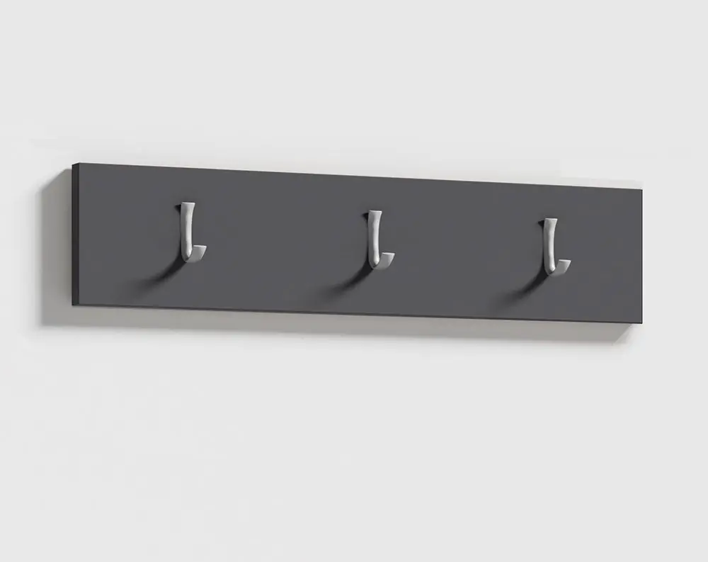 Einfache Kleiderhakenleiste mit drei Haken Zapopan 83, für die Garderobe, Maße: 15 x 50 cm hochwertige Verarbeitung, Farbe: Grafit