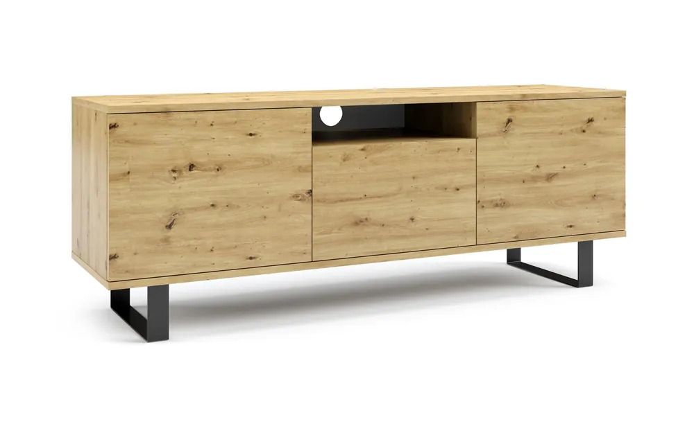 Einfacher TV-Unterschrank / TV-Möbel Zapopan 97, Farbe: Eiche Artisan, Maße: 56 x 150 x 40 cm, Push-to-open Funktion, vier Fächer, hängend montierbar