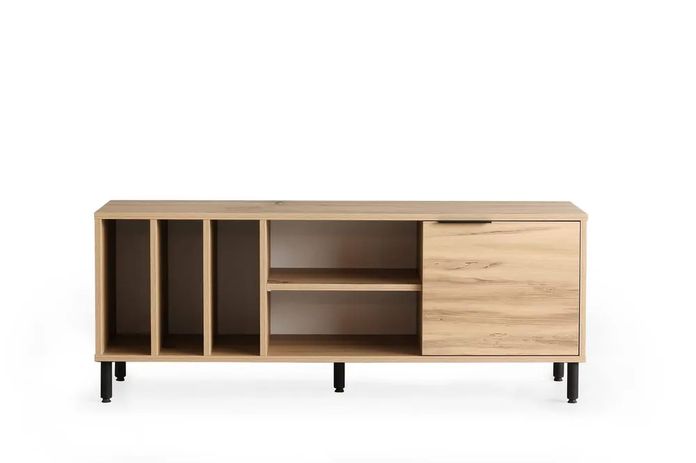 Wofür geeignet? Durch die große Ablagefläche lassen sich Fernseher von fast allen Größen problemlos darauf platzieren. Die 2 Fächer. die Schublade und Tür bieten Platz für weitere Kleingeräte und sonstige Gegenstände.  Pflegehinweise: Die Oberfläche mit einem lauwarm angefeuchteten Baumwolltuch reinigen. Keine Scheuermittel, scharfen Reinigungsmittel oder tropfnassen Tücher verwenden. Keine weitere Behandlung der naturbelassenen Oberfläche (Ölen, Wachsen) notwendig. DesignWunderschöner, zurückhaltender LandhausstilEinzigartige Maserung und eleganter FarbtonVier massive Holzbeine geben dem Lowboard Halt und StabilitätViel Stauraum in zwei offenen Fächern, einer Schublade und einem TürfachAbmessungenBreite: 140 cmHöhe: 40 cmTiefe: 35 cmHöhe der Füße: 8 cmFächer B x H x T: 55 cm x 14 cm x 35 cmTüre innen B x H x T: 35 x 29 x 25 cmSchub innen B x H x T: 30 x 21 x 27 cmFarbeKomplettes Lowboard: Holzfarben (Sheesham)BesonderheitenGefertigt in liebevoller Handarbeit – jeder Artikel ein UnikatInklusive SchubladenstoppAnschlag der Tür auf der rechten SeiteStabiler Stand dank vier massiver BeineDa es sich um Handarbeit und um ein Naturprodukt handelt kann es zu Farbabweichungen oder Unebenheiten kommenMaterialKompletter Fernsehschrank: Massivholz SheeshamLieferumfang Ein TV-Lowboard ohne DekorationMontageLieferzustand: Montiert