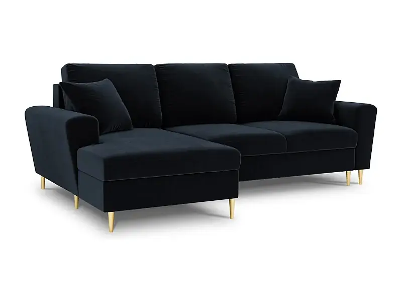Finale Aktion Cosmopolitan Design – 4-Sitzer ausklappbares Ecksofa links mit Container „Kyoto“ aus Samt dunkelblau – 241x145x88cm