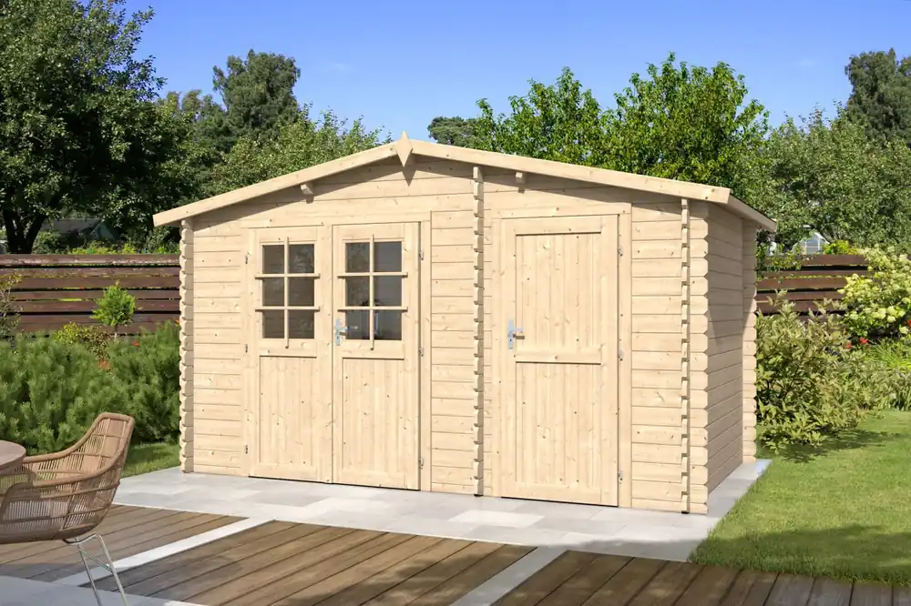 Das moderne Gartenhaus Landtraum 01 bietet viel Platz für Ihre Geräte und Gartenmöbel und überzeugt zudem mit seiner natürlichen Ausstrahlung sowie attraktivem Design. Die 28 mm starken Blockbohlen werden aus unbehandeltem, FSC® zertifiziertem, nordischem Fichtenholz gefertigt. Die perfekte Verarbeitung sowie eine wind- und regendichte Chaletschnitt-Eckverbindung garantieren Schutz vor jeder Witterung und eine lange Lebensdauer.