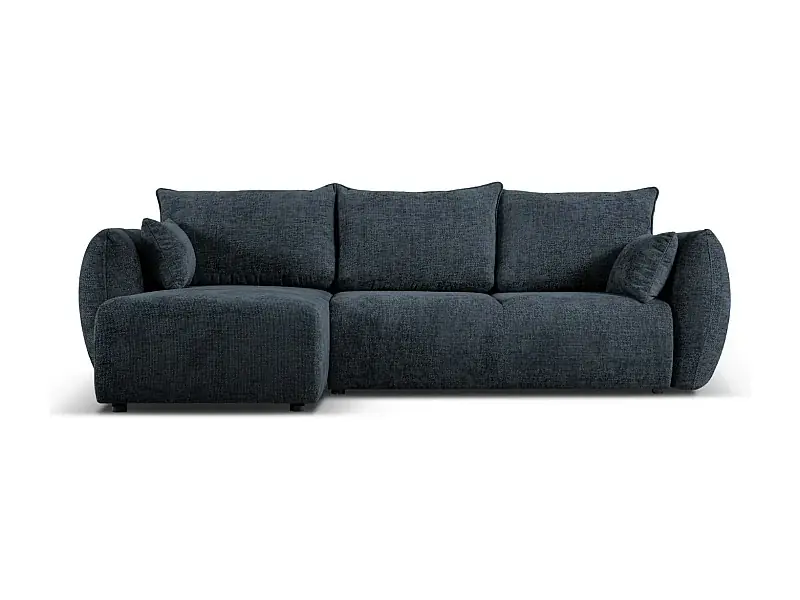 Geprüft Cosmopolitan Design – 4-Sitzer ausklappbares Ecksofa links mit Container „Matera“ aus Chenille-Stoff königsblau – 253x173x86cm