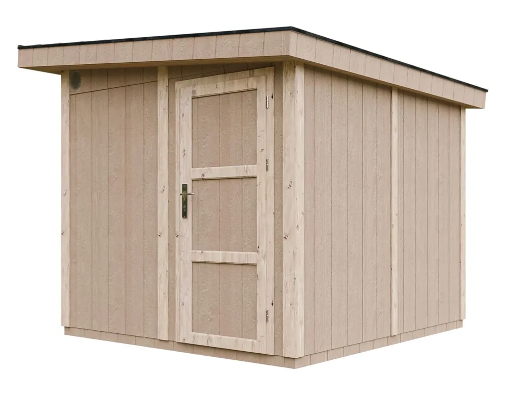 Gerätehaus Weitra Natur mit Fußboden, Einzeltür, inkl. Bitumen-Dachschindeln, 236 x 250 cm, Nutzfläche: 5,9 m², Wandpaneele: 10 mm, Lüftungsgitter