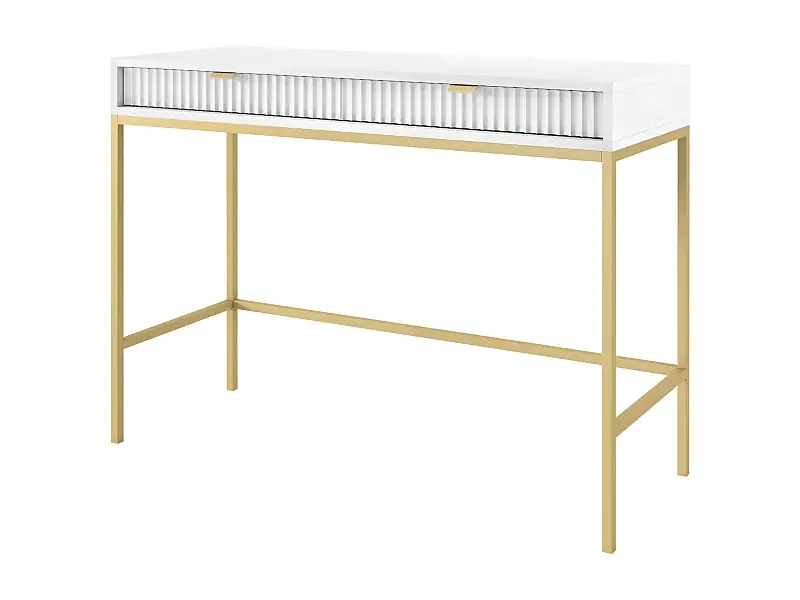Geriffelte Schminktisch mit goldenen Griffen Stahlrahmen MDF-Schreibtisch 2 Schubladen Skulptierte Front 104x78x50cm Matt Weiß Goldene Metallfüße Online Kaufen