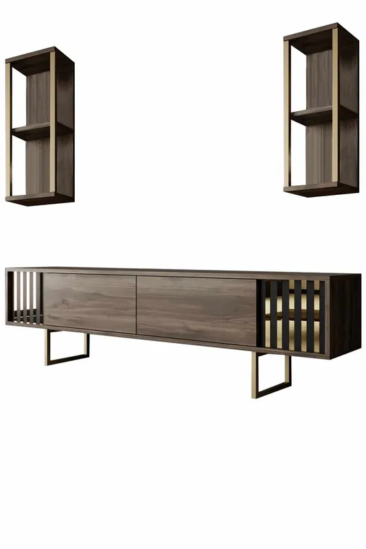 Gold Line – weiß, schwarz – TV Lowboard mit Regalen Bestpreis