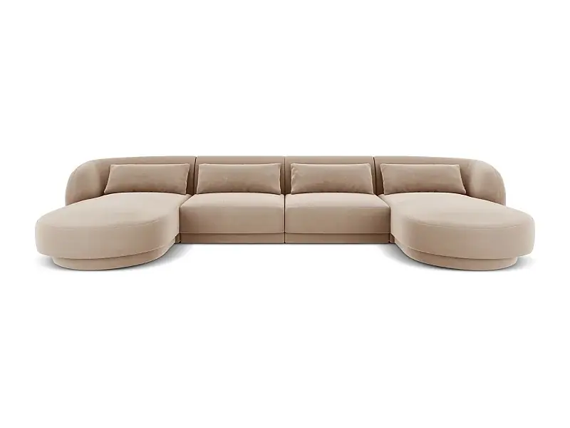 Gratis Versand Cosmopolitan Design – 5-Sitzer Panoramasofa „Tulum“ aus Samt beige – 330x156x70cm