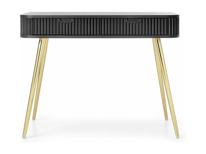 Gratis Versand Schminktisch mit 2 Schubladen – schwarz mit goldenen Beinen – 110 cm – ZOVA