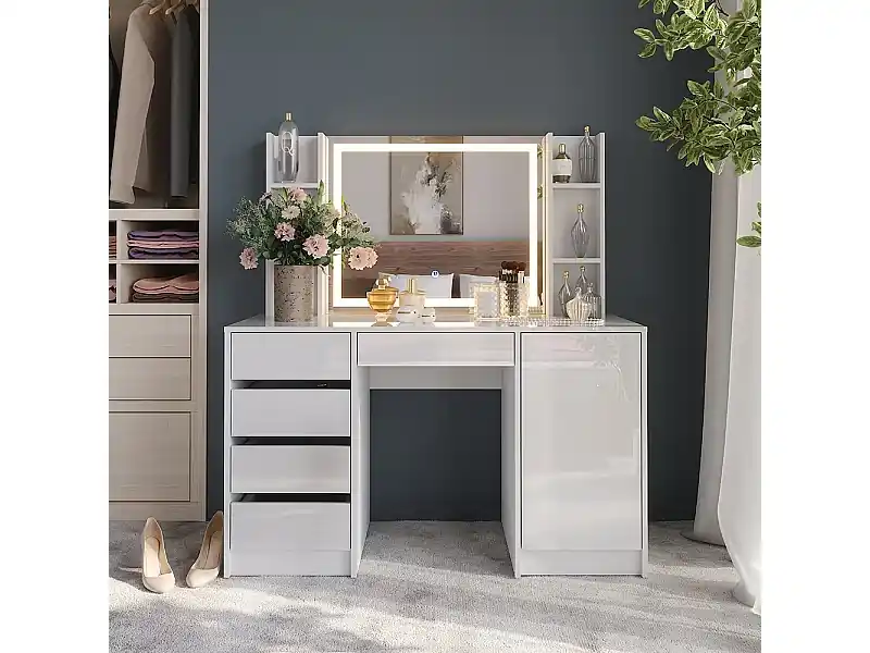 Gratis Versand Schminktisch weiß/weiß hochglanz 128.2×50.1×76 sherry