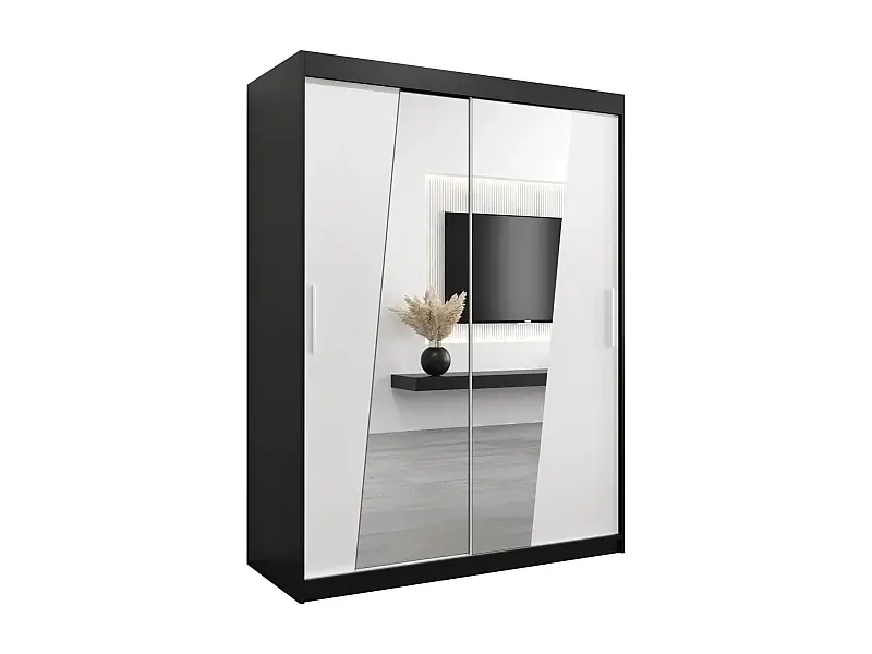 Gratis Versand Schwebetürenschrank Wave 200/150/62 2-Türig (Schwarz/Weiß)