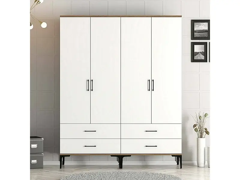 Großer Kleiderschrank Dfurlott, Schlafzimmermöbel, Schrank, Garderobe, 160x201h48 cm, Walnuss und Weiß Sofort Bestellen