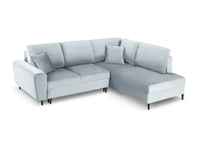 Günstig Cosmopolitan Design – 5-Sitzer ausklappbares Ecksofa rechts mit Container „Kyoto“ aus Samt hellblau – 243x194x88cm