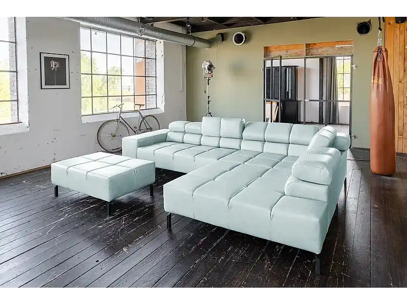 Günstig Ecksofa – Hellblau Leder – NELSON