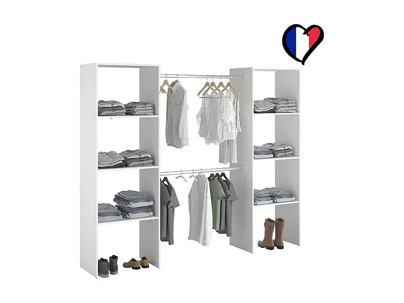 Günstig Kleiderschrank 6 Fächer, 2 Garderoben 220 x 40 x 180 cm, weiß ELYSEE
