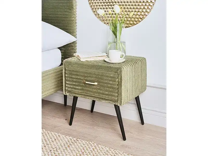 Günstig Nachttisch mit 1 Schublade FLAYAT Cord Grün