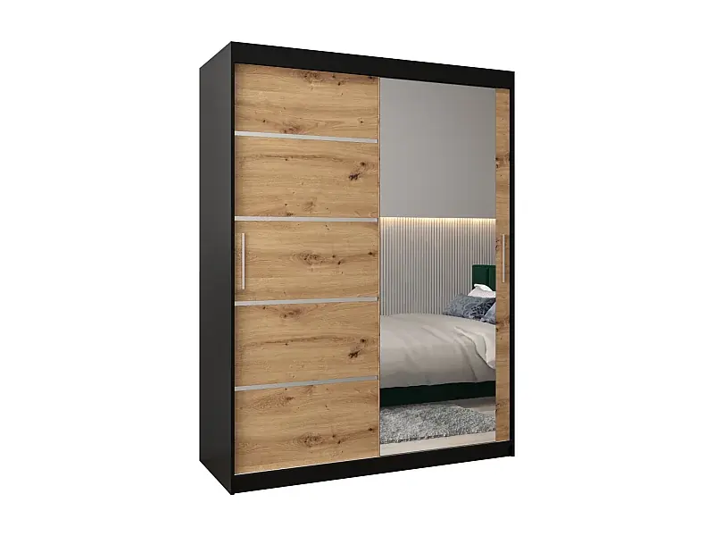 Günstig SCHWEBETÜRENSCHRANK VERONA 2 200/150/62 2-türig (Schwarz/Artisan)