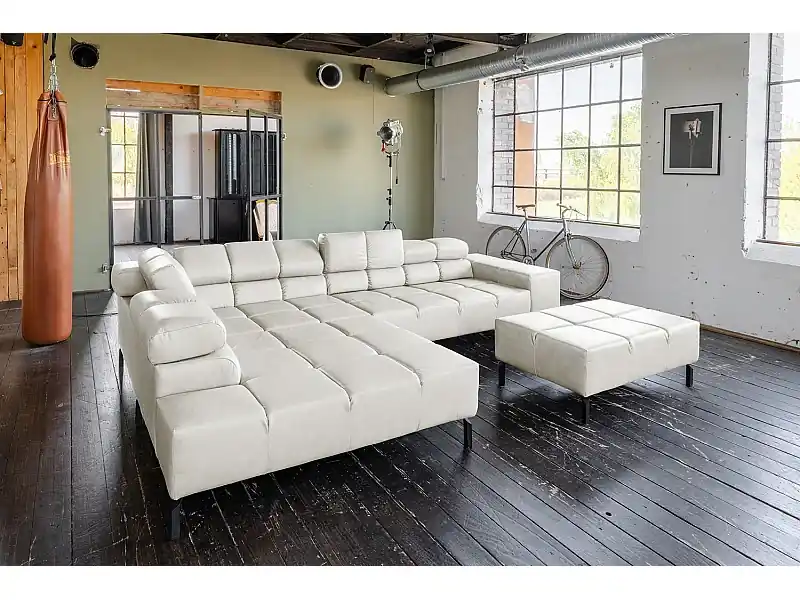 Heißes Angebot Ecksofa – Hellgrau Leder – NELSON