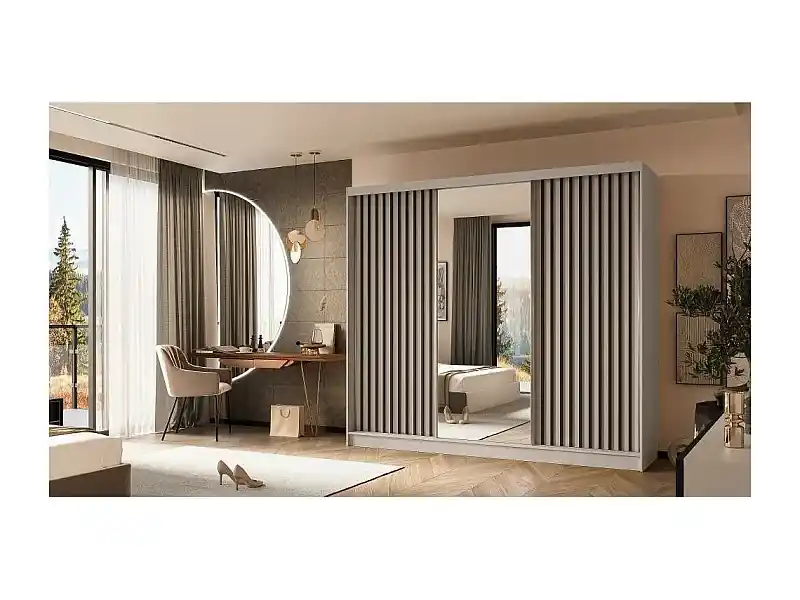 Heißes Angebot SCHWEBETÜRENSCHRANK Helix 240/216/61 kaschmir+schwarz mit Schubladeneinsätze