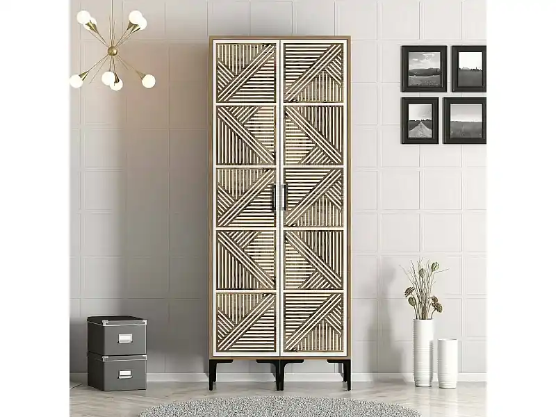 Jetzt Bestellen Kleiderschrank 2 Türen Dbonanse, Schlafzimmermöbel, Schrank, Garderobe, 80x201h48 cm, Walnuss und Weiß