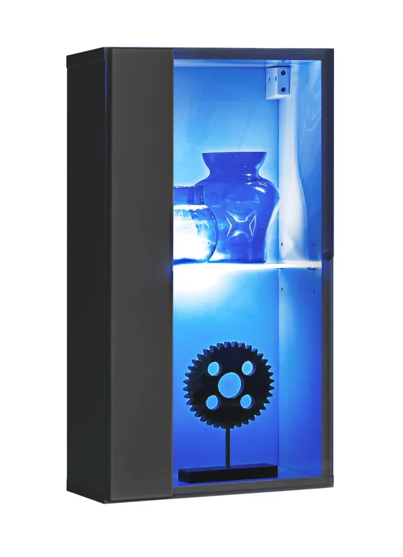 Stylische Hängevitrine mit LED-Beleuchtung Möllen 11, Farbe: Grau – Abmessungen: 60 x 30 x 25 cm (H x B x T), mit Push-to-open Funktion