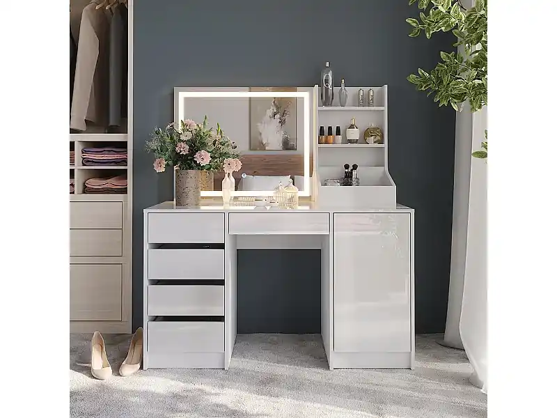 Jetzt Kaufen Schminktisch weiß/weiß hochglanz 128.2×50.1×76 sherry