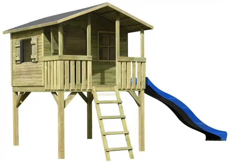 Dieses Spielhaus ist ein wahres Paradies für Kinder. Dank der umfangreichen Ausstattung können sie sich nicht nur ausreichend im Freien bewegen und austoben, sondern auch ihre Koordination, Kraft und Geschicklichkeit unter Beweis stellen. Auf der erhöhten Terrasse können die Kleinen herumtollen und gleichzeitig den Garten überblicken. Zudem bietet das Stelzenhaus Platz für die Aufbewahrung von Spielzeug.