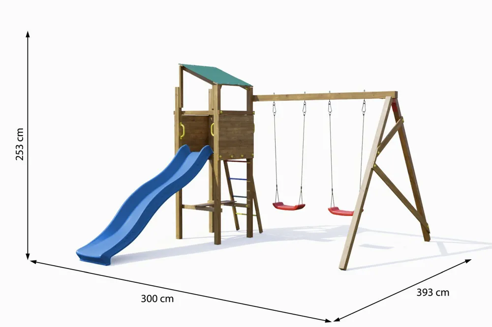Kinderspielturm / Spielanlage Anton inkl. Doppelschaukel und Wellenrutsche FSC®