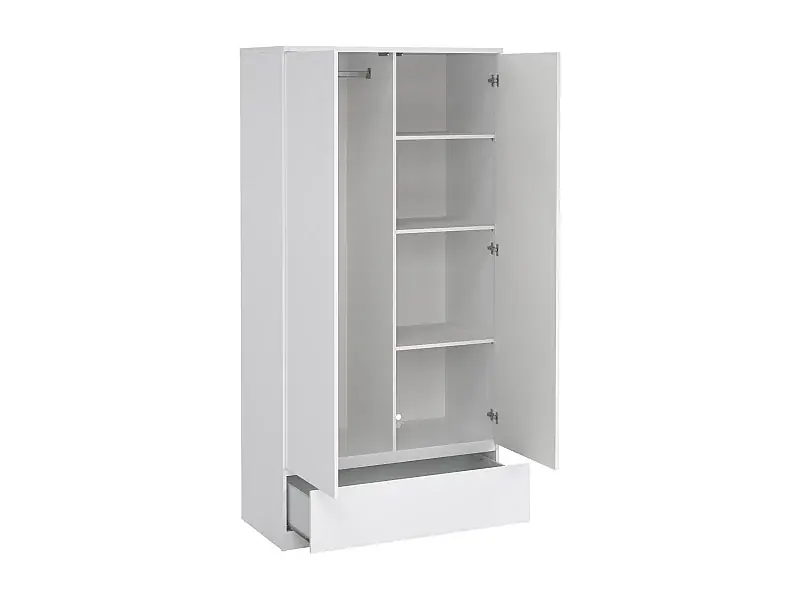 Kleiderschrank 2 Türen Dsecch, Schlafzimmermöbel, Schrank, Garderobe, 99×50 h201 cm, Weiß Finale Aktion
