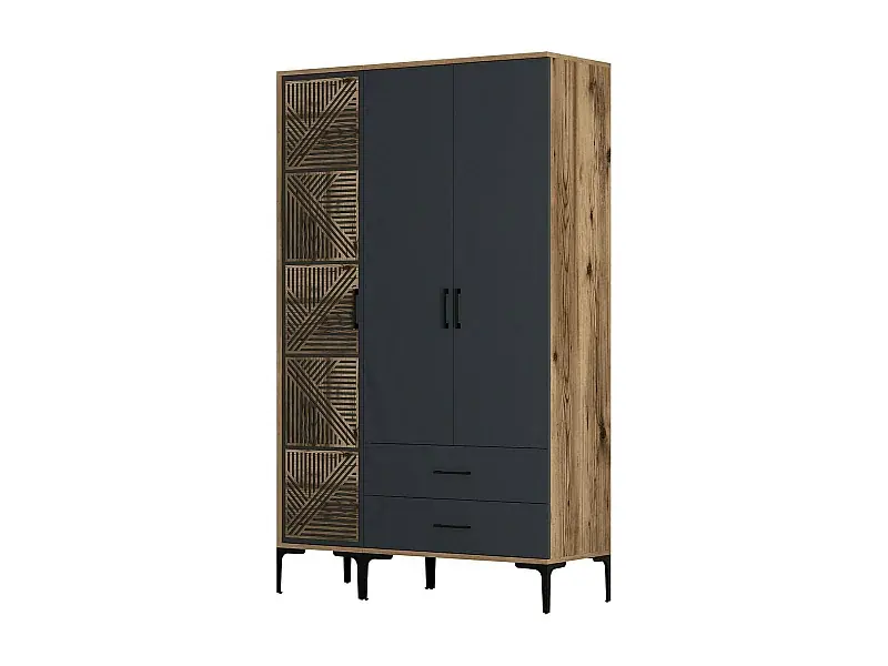 Kleiderschrank 3 Türen Dgalbiat, Schlafzimmermöbel, Schrank, Garderobe, 120x48h201 cm, Walnuss und Anthrazit Knallerangebot