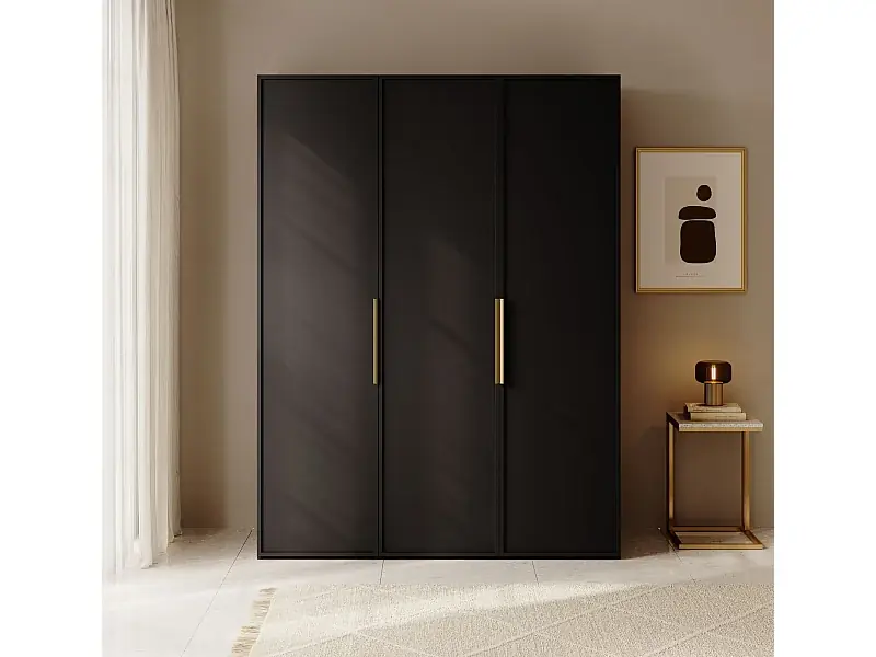 Kleiderschrank 3T mit langer Stange & Schubladen – 150 cm – schwarz – FRAME Sofort Bestellen
