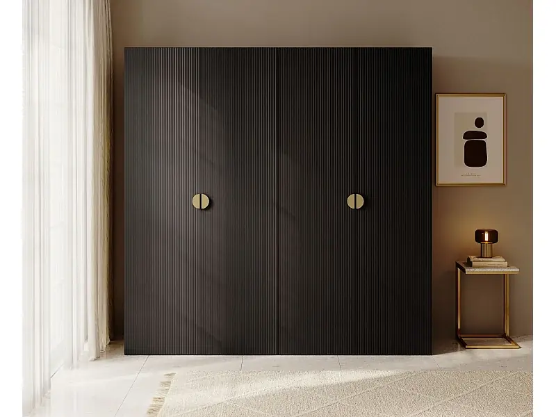 Kleiderschrank 4T mit 2 Stangen & Regalen – 200 cm – schwarz – MOONIR Abverkauf