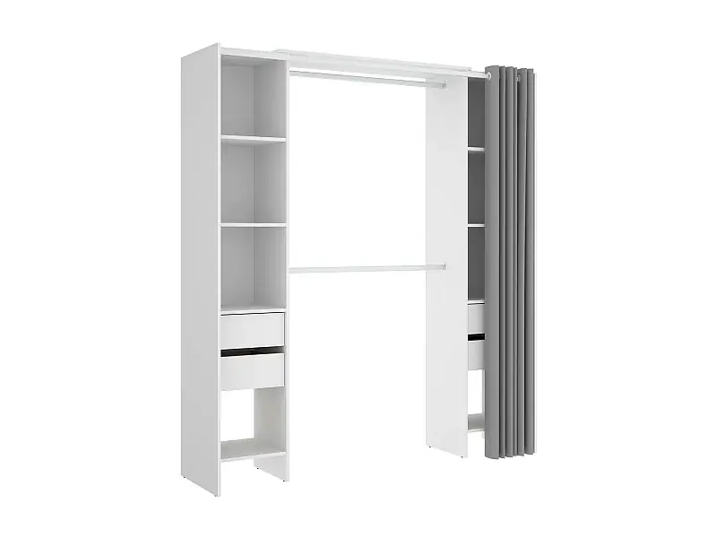 Kleiderschrank Dmanari, Struktur für begehbaren Kleiderschrank, offener Kleiderbügel, 180 x 50 x 205 cm, Weiß und Grau Expressversand