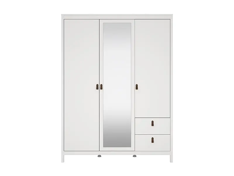 Kleiderschrank mit 3 Türen (1 Spiegel) und 2 Schubladen weiß B150 cm – BARCELONE Geprüft
