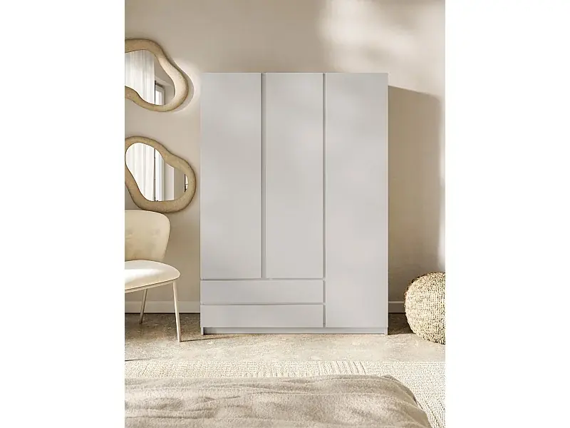 Kleiderschrank mit 3 Türen – Kleiderstange – 2 Schubladen – Kaschmirgrau – 150 cm – BEMMI Versand Am Gleichen Tag